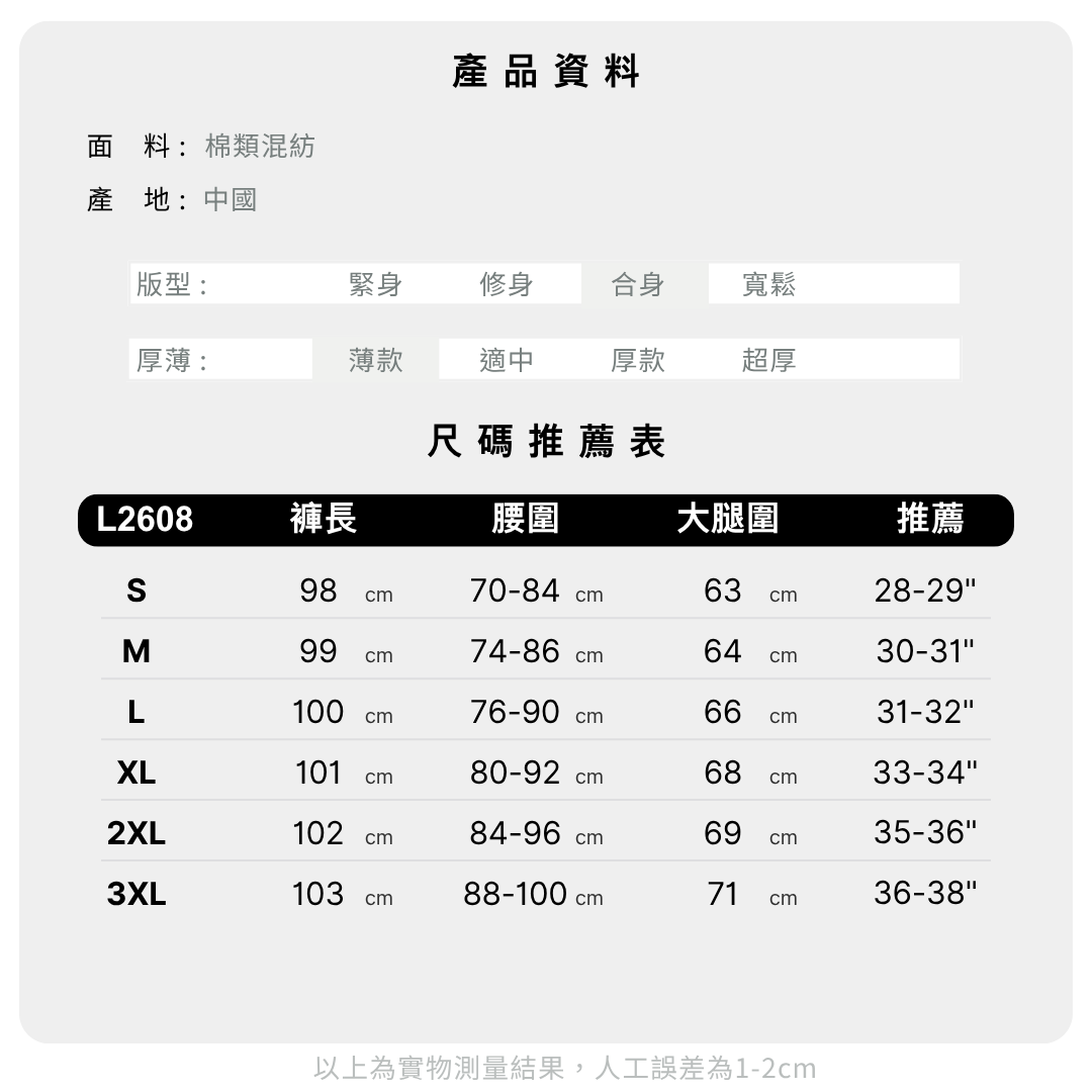 • 夏季薄款面料 • 手感柔軟微彈性 • 束腳設計 注意事項 : ※ 產品已經過預縮處理,正常洗用縮水率在1%以下。 ※ 訂單按次序安排,現在出貨輪候時間約三至七日。